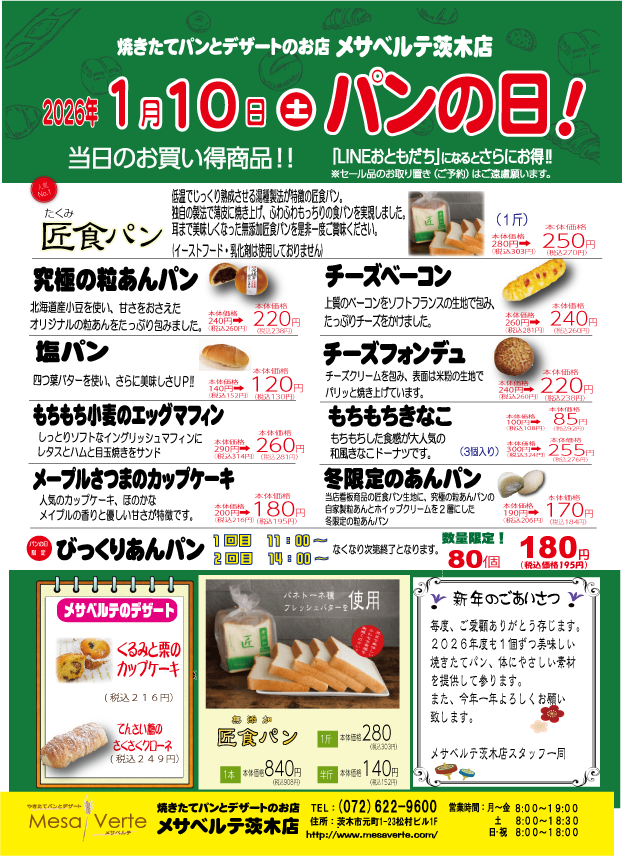 1月10日(土)はメサベルテ茨木店のパンの日です♪