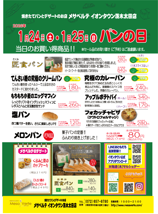 1月24日(土)・25日(日)は、イオンタウン茨木太田店の「パンの日」!