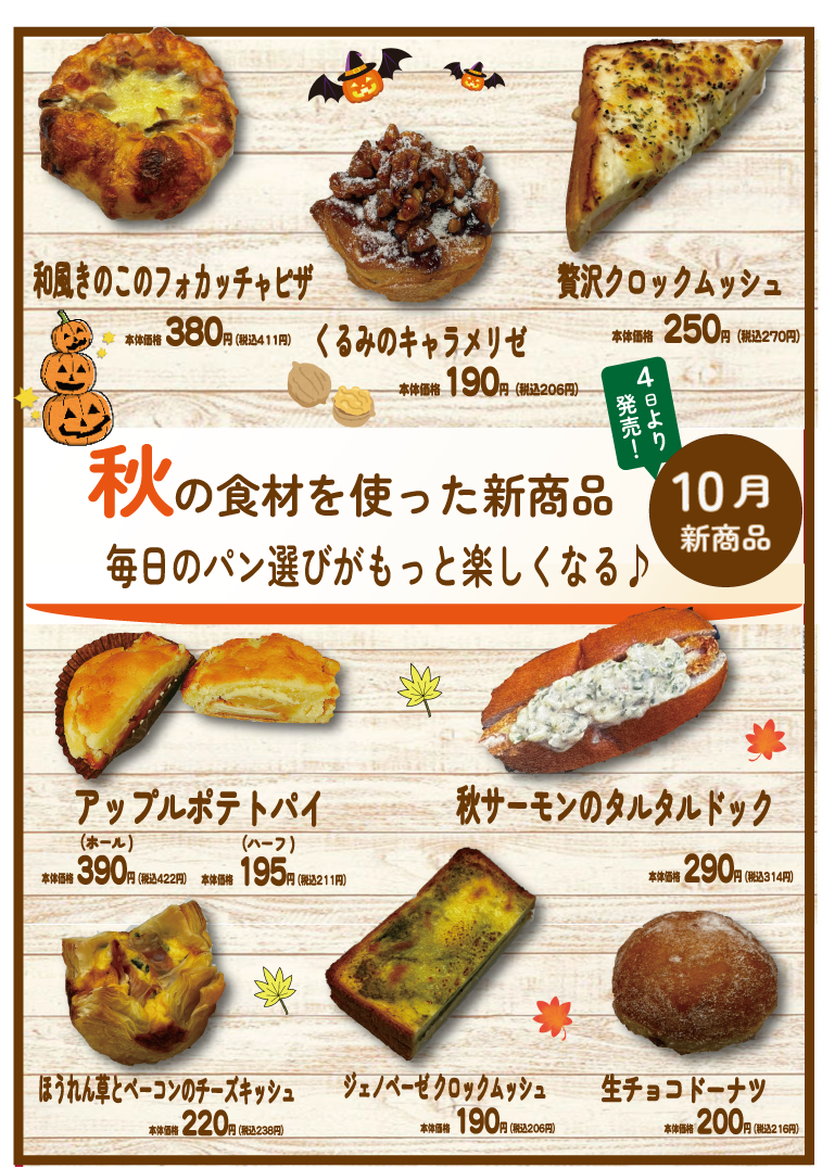 10月の新商品はくるみやさつまいもを使用した商品が登場します♪