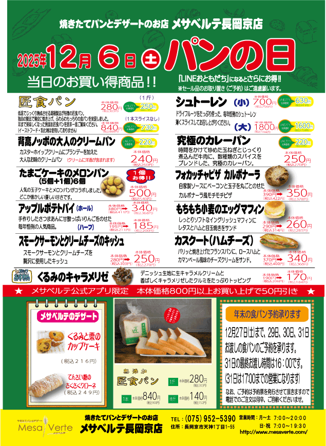 12月6日(土)はメサベルテ長岡京店のパンの日!(*^^)v